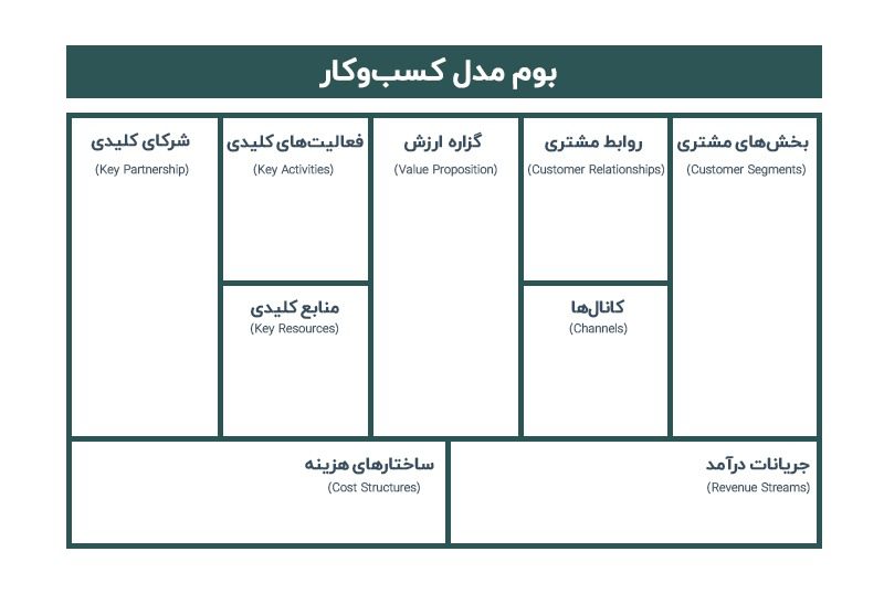 - ماهیت بصری بوم مدل کسبوکار، درک آن و ارجاع به آن را سادهتر میکند.